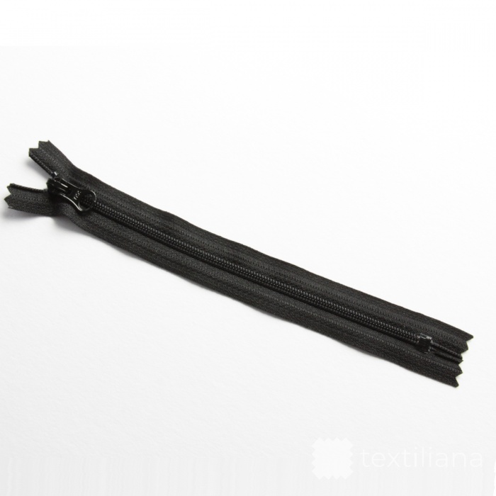 Nedělitelný černý spirálový zip YKK velikosti 3 v délce 18 cm s kulatým táhlem jezdce. Zip je vhodný na kapsy. Velmi snadno si délku přizpůsobíte vlastním potřebám zkrácením spodní části.
